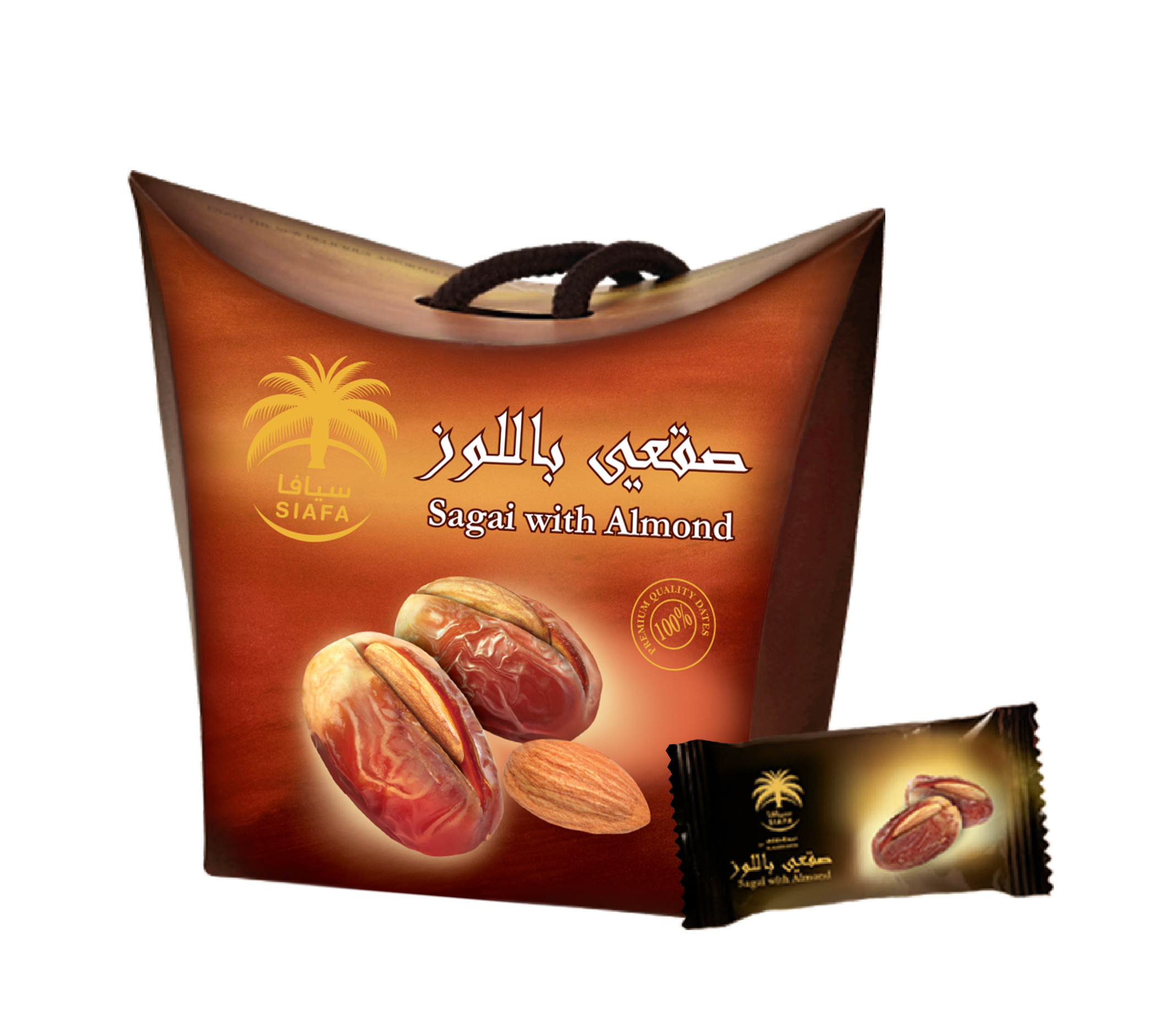 يتم تعبئة التمور عالية الجودة بحشوة كلاسيكية من اللوز ، لمذاق شهي.